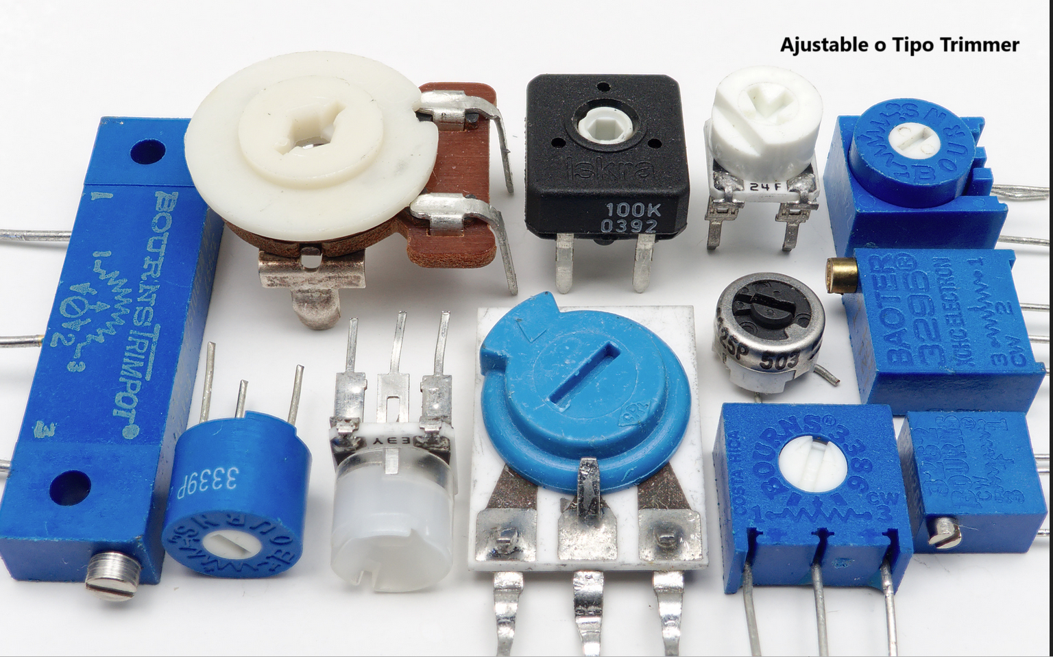 Eje o tornillo ajustable: Permite girar el cursor, ajustando la resistencia. En los trimmers, el ajuste se realiza con un destornillador.