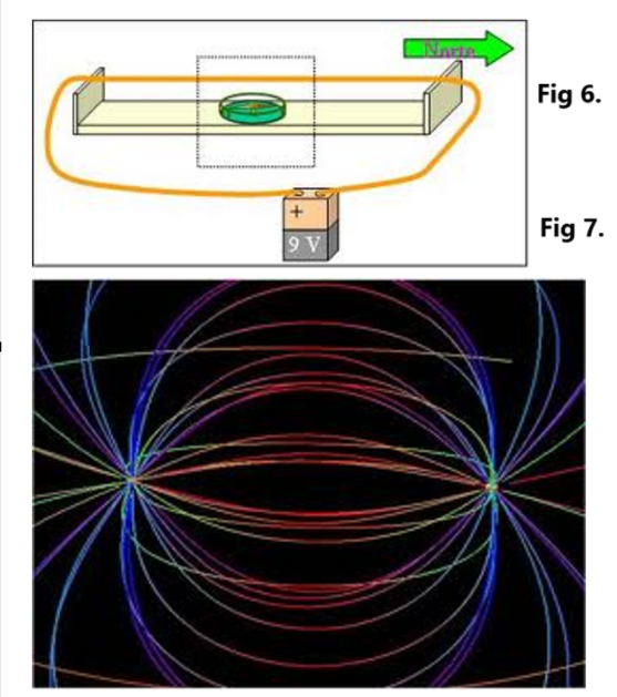 Aunque no podemos ver el campo magnético directamente, podemos detectar sus efectos de diversas maneras, por ejemplo, utilizando una brújula o al observar cómo interactúa con otros materiales magnéticos. Fig 7