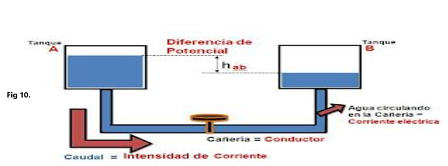 Si comparamos la corriente con el flujo de agua en una tubería, el voltaje sería la presión del agua. Fig 10.