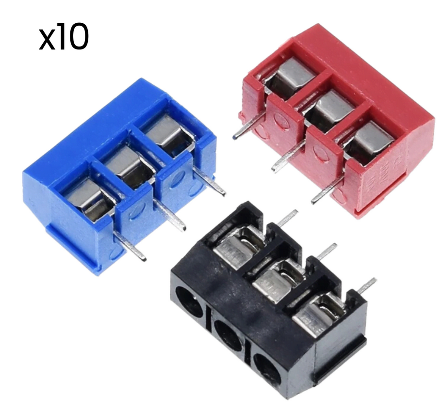 Conectores de terminales (también conocidos como terminal blocks o borneras), muy comunes en electrónica y proyectos de control.