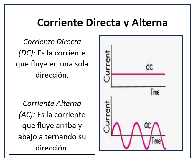 Corriente Alterna (C.A.): Es un tipo de corriente eléctrica en la que la dirección del flujo de electrones se invierte periódicamente. Esto significa que los polos (positivo y negativo) cambian de lugar varias veces por segundo.