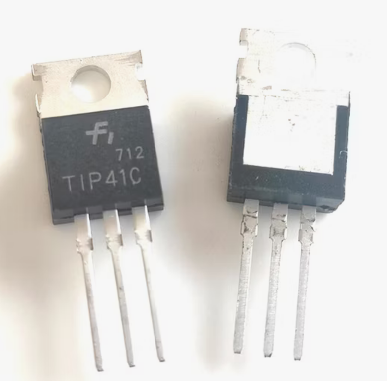 Por ejemplo tenemos el TIP41C, es un transistor NPN que puede manejar hasta 6 amperios de corriente y 100 voltios de tensión.
