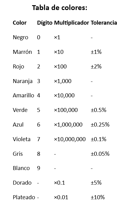 Las resistencias tienen un código de colores que indica su valor y tolerancia. Este código está compuesto por anillos de colores que debes interpretar siguiendo un orden específico.