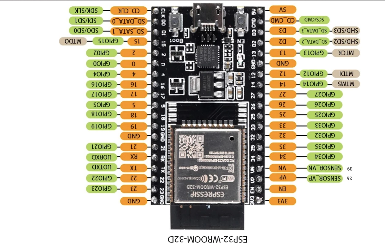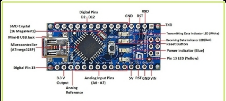 Aquí podemos observar el Arduino Nano y el Esp32, ambos con su configuración de patilla.